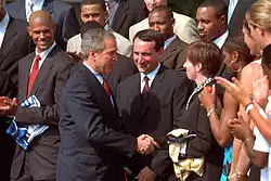 President George W. Bush congratulating Mike Krzyzewski and the 2001 NCAA champions at the White House
