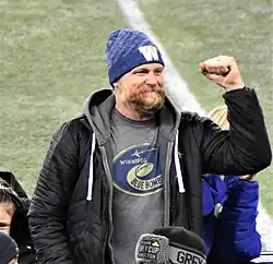 O'Shea at the Blue Bombers 2021 Grey Cup celebration in Winnipeg.