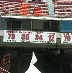 McElhenny's No. 39 and Perry's No. 34 displayed in Candlestick Park