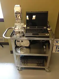 Since 1960, most chemistry analysis is done using instruments. One of these, atomic absorption spectroscopy, is similar to wet chemistry in that the sample must still be dissolved, but it is much faster and cheaper. The solution is vaporized and its absorption spectrum is measured in the visible and ultraviolet range.[7]: 225–226 Other techniques are X-ray fluorescence, electron microprobe analysis atom probe tomography and optical emission spectrography.[7]: 227–232
