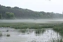 A two-mile (3.2 km) trail runs through wetlands south of the lake. There is parking at either end of the trail, off River Hills Drive and Cliff Road. There is an observation platform on the north shore of the lake off Black Dog Road.[5]
