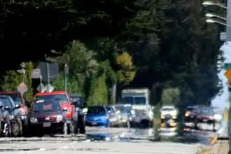 Heat haze, also called heat shimmer, refers to the inferior mirage observed when viewing objects through a mass of heated air. Common instances when heat haze occurs include images of objects viewed across asphalt concrete (also known as tarmac), roads, and over masonry rooftops on hot days, above and behind fire (as in burning candles, patio heaters, and campfires), and through exhaust gases from jet engines. When appearing on roads due to the hot asphalt, it is often referred to as a "highway mirage". It also occurs in deserts; in that case, it is referred to as a "desert mirage". Both tarmac and sand can become very hot when exposed to the sun, easily being more than 10 °C (18 °F) higher than the air a meter (3.3 feet) above, enough to make conditions suitable to cause the mirage.