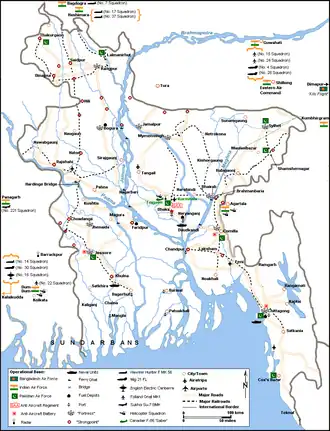 Location of Mitro Bahini and Pakistani units in December 1971. Some unit locations are not shown. Map not to exact scale