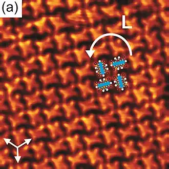 - ^ Rabe, J.P. & Buchholz, S. (1991). "Commensurability and Mobility in Two-Dimensional Molecular Patterns on Graphite". Science. 253 (5018): 424–427. Bibcode:1991Sci...253..424R. doi:10.1126/science.253.5018.424. JSTOR 2878886. PMID 17746397. S2CID 42385720.