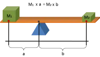 In works believed to stem from Ancient Greece, the concept of a moment is alluded to by the word ῥοπή (rhopḗ, lit. "inclination") and composites like ἰσόρροπα (isorropa, lit. "of equal inclinations").[5][6][7] The context of these works is mechanics and geometry involving the lever.[8] In particular, in extant works attributed to Archimedes, the moment is pointed out in phrasings like: