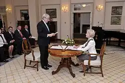 Kevin Rudd being sworn in as Prime Minister of Australia by Governor-General Quentin Bryce on 27 June 2013
