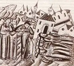 During his withdrawal from Hungary back into Ruthenia, part of Batu Khan's army invaded Bulgaria. A Mongolian force was defeated by the Bulgarian army under Tsar Ivan Asen II.[42] A larger force returned to raid Bulgaria again the same year, though little is known of what happened. According to the Persian historian Rashid-al-Din Hamadani, the Bulgarian capital of Tarnovo was sacked. This is unlikely, but rumor of it spread widely, being repeated in Palestine by Bar Hebraeus.[43] The invasion of Bulgaria is mentioned in other contemporary sources, such as Philippe Mouskès, Thomas of Cantimpré and Ricoldo of Montecroce.[44] Contemporary documents indicate that by 1253, Kaliman I was a tribute-paying vassal of the Mongols, a status he had probably been forced to accept during the invasion of 1242.[45]