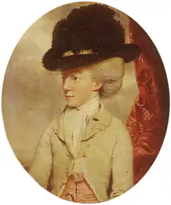 In 1772 he married Charity Ourry (1752–1786), daughter of Admiral Paul Henry Ourry (1719–1783),[11] of Plympton House in the parish of Plympton St Maurice, Devon, MP for Plympton Erle 1763–1775 and Commissioner for Plymouth Dockyard. Paul Ourry was the second son of Louis Ourry, a Huguenot refugee from Blois in France who had obtained British citizenship in 1713 and a commission in the British army.[12] Charity Ourry's mother was Charity Treby, daughter of George II Treby of Plympton House. By his wife he had two sons: