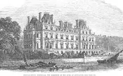 In the late 1850s, the 2nd Duke of Montagu's descendant, Walter Montagu Douglas Scott, 5th Duke of Buccleuch, one of the United Kingdom's three or four richest landowners, replaced the Georgian house with one of the grandest private mansions in London. It was designed by the versatile Scottish architect William Burn in the style of a French Renaissance chateau. The building was admired in its day. It was built of Portland stone, with a steep mansard roof, corner towers and a skyline peppered with stone chimneys. The interior featured a top-lit central saloon and a grand staircase, heavily coffered ceilings and elaborately carved furnishings. It housed part of the exceptional Buccleuch art collection, including works by Rubens and Rembrandt and the finest British collection of miniatures apart from the Royal Collection.[2] Princess Alice, Duchess of Gloucester, was born there in 1901.[3]