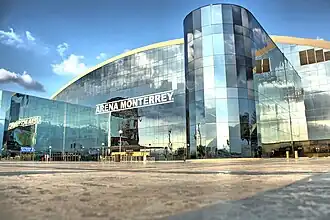 From top, left to right: Monterrey Country Club aerial view; Arena Monterrey; Building of Banco Mercantil de Monterrey; Rufino Tamayo Park; Torres Obispado; Estadio BBVA; Monterrey Cathedral & Macroplaza (Padre Mier Avenue). | ||