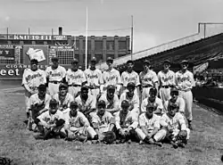 The team holds a unique place in baseball history for being the first major-league affiliate to break the so-called "baseball colour barrier". On October 23, 1945, two members of the Brooklyn National League Baseball Club Inc. Board of Directors, Montreal Royals owner and team president, Hector Racine, and Brooklyn Dodgers general manager, Branch Rickey, signed Jackie Robinson, an African-American.[6][7] Robinson played with the Royals during the 1946 season. John Wright and Roy Partlow, black pitchers, also played with the Royals that year.[8]