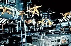 The climax of the film with the laser battle on Drax's space station. Moonraker holds the world record for the largest number of zero gravity wires in one scene.
