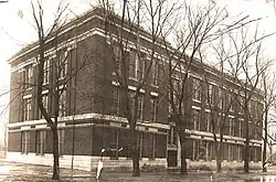 Illinois law said that property set aside for schools at the time of annexation had to be used for that purpose. When it became evident that annexation would occur, Morgan Park raised the funds to buy land and begin building a high school. Annexation became reality in 1914, and the Morgan Park schools came under the jurisdiction of Chicago on April 24 of that year. It took another two years for the high school building to be completed, but finally, the doors opened in January 1916. A number of students who had dropped out were attracted by the opportunities of the new school and planned to re-enter. The first class graduated from the new high school on June 22, 1916. There were 37 four-year program graduates and six two-year program graduates.[7] In the following decade, the school was expanded to include a Social Room, gymnasium, auditorium (Blackwelder Hall), pool, garages, and around 25 classrooms. The extra expansion was completed in 1926 and is located facing where Pryor Avenue once existed.[6]