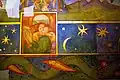 The decorations were completed in 1886 and strongly reflect themes of motherhood and the redemption of mankind.[7] In a time when as many as 8% of children did not live to see their first birthday,[2] Traquair aimed to offer comfort and support to grieving parents through her decoration scheme. In style she draws on interpretations of medieval illuminated manuscripts and Eastern Orthodox imagery,[2] in a mixture of realism and Symbolism.[7] A review in the Scottish Art Review by Gerald Baldwin Brown in 1889 refers to the murals as “...a piece of illumination enlarged”.[8]