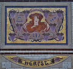 Noted 19th-century mosaics include those by Edward Burne-Jones at St Pauls within the Walls in Rome.[29] Another modern mosaic of note is the world's largest mosaic installation located at the Cathedral Basilica of St. Louis, located in St. Louis, Missouri.[30] A modern example of mosaic is the Museum of Natural History station of the New York City Subway (there are many such works of art scattered throughout the New York City subway system, though many IND stations are usually designed with bland mosaics). Another example of mosaics in ordinary surroundings is the use of locally themed mosaics in some restrooms in the rest areas along some Texas interstate highways.