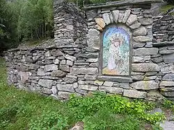Mosaic embedded in stone wall, Italian area of Switzerland
