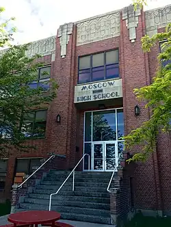 Moscow High School (MHS) is a four-year public high school in Moscow, Idaho, United States.[7] The flagship school of the Moscow School District serves grades 9–12. Since 2013, Erik Perryman has served as principal.[8][3] MHS colors are red, black, and white, and the mascot is a bear.[7]