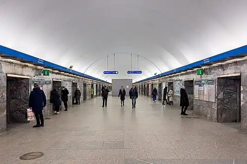 Moskovskaya (Russian: Моско́вская) is a station on the Moskovsko–Petrogradskaya Line of the Saint Petersburg Metro. Although it was opened on December 25, 1969, it is equipped with the so-called platform screen doors. Moskovskaya metro-station is one of the first stations in the world with such a system of doors.