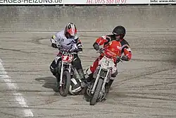 Motoball (also known as motorcycle polo) is a team motorsport similar to association football, with the main differences being that all players (except goalkeepers) are riding motorcycles, and the ball is much bigger.[1] Motorcycle polo first began as an officially organized sport in the mid-1920s.[2]