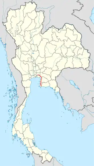 The Bangkok−Ban Chang Motorway (Thai: ทางหลวงพิเศษกรุงเทพมหานคร−บ้านฉาง, RTGSThangluang Phiset Krung Thep Maha Nakhon−Ban Chang), designated Motorway Route 7, is a motorway in Thailand, connecting Bangkok to Chonburi, Pattaya, and Map Ta Phut. The country's first intercity motorway, it is part of the Asian Highway Network as AH Route 19 and AH Route 123. The entire length from Bangkok to Pattaya is 125.865 kilometres (78.209 mi) and the posted speed limit is 120 kilometres per hour (75 mph), enforced primarily by speed cameras. An extension between Pong and Map Ta Phut opened in May 2020.[1] It is part of the transport network development project in the eastern seaboard.