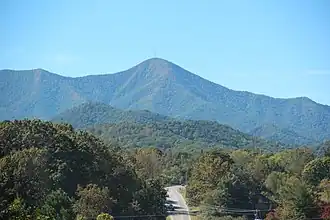 Mount Pisgah is a mountain in the Appalachian mountain range and part of the Blue Ridge Mountains of North Carolina, United States. The mountain's height is 5,721 feet (1,744 m) above sea level, and it sits approximately 15 miles (24 kilometers) southwest of Asheville, near the crossing of the boundaries of Buncombe, Haywood, Henderson and Transylvania counties. It is located on the border of Buncombe and Haywood counties, close to the point where Henderson and Transylvania meet them, but not actually within the latter two counties. The mountain is easily accessible via a hiking trail from the Blue Ridge Parkway, near the Pisgah Inn.