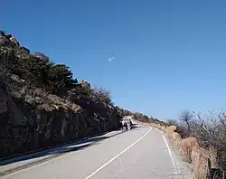 Mount Scott (Comanche: Pisaroya, "Big Mountain")[4] is a prominent mountain just to the northwest of Lawton, Oklahoma rising to a height of 2,464 feet (751 m)[5] and is located in the Wichita Mountains near Fort Sill Military Reservation and lies in the Wichita Mountains National Wildlife Refuge (WMWR). The US Fish and Wildlife Service is responsible for the maintenance of the area. Visitors can reach the summit by car or bicycle via a three-mile paved road. Hiking is allowed, although there are no formal trails and the paved road is open to pedestrians and bicycles from 6am to 9:30 am only. Mount Scott is also popular for its numerous rock climbing areas. The peak was named in honor of General Winfield Scott.[6]