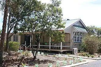 In 1918 a teacher's residence was constructed for £588 and was ready for occupation by February 1919.[29][30] This two bedroom teacher's residence (type C/R2) was one of three standard designs created between 1894 and 1914.[31] From the outset, teacher's residences were built to a standard regulated by the Board of General Education rather than a specific design, so the form varied with each commissioned architect.[32] Initially, residences were most often attached as annexes to the classroom building, but from the 1880s were built as detached residences. These residences were similar to the vernacular Queensland house with few, if any, education-specific requirements or features.[1]