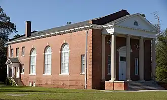Mt. Zion Presbyterian Church is a historic Presbyterian church located near Bishopville Lee County, South Carolina. It was built in 1911, and is a linear gable-front, temple-form, two-story brick building in the Neoclassical style. Set upon a raised brick foundation, the building's most imposing feature is its tetrastyle portico featuring a full-width masonry stair with cheek walls and monumental limestone columns and pilasters of the Ionic order. Directly to the rear of the church building is a small, one-story lateral-gabled frame building, constructed in 1851 as Mt. Zion's Session House.[2][3]
