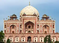 Humayun's Tomb, with exterior iwans, four-centred pointed arches, and a central bulbous dome visible