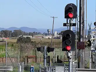 Mulgrave railway station is on the Richmond railway line. It is four stations from the terminus station at Richmond. Mulgrave station is 53 kilometres (33 mi) from Sydney's Central Station, which takes approximately 1 hour 6 minutes to travel by train during peak hour.[5] The station along with the arrival of a steam train features in The Seekers at Home TV special, 1968. Filmed as the setting for the song "Angeline is always Friday", steam hauled services ceased to operate shortly afterwards.