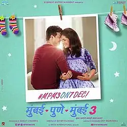 Mumbai-Pune-Mumbai 3 is a 2018 Indian Marathi language romantic drama film directed by Satish Rajwade and produced by 52 Friday Cinemas and Everest Entertainment and distributed by Eros International. The film is the third installment to the Mumbai-Pune-Mumbai film series before its prequels titled Mumbai-Pune-Mumbai (2010) and Mumbai-Pune-Mumbai 2 (2015). Released theatrically on 7 December 2018, the film stars Swapnil Joshi and Mukta Barve in lead roles and Prashant Damle, Mangal Kenkre, Vijay Kenkre, Savita Prabhune, Suhas Joshi and Rupal Nand in supporting roles.[1] The screenplay and the dialogues are written by Ashwini Shende, Pallavi Rajwade and Satish Rajwade.[2] The film score and soundtrack album are composed by Avinash-Vishwajeet and Nilesh Moharir.[3][4]