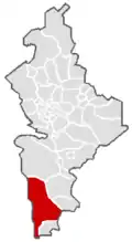 Outside the Monterrey Metropolitan Area, the state is sparsely populated. The largest municipality by population is Monterrey, with 1,142,994 residents (19.75% of the state's total), while the smallest is Parás with 906 residents.[1] The largest municipality by land area is Galeana which spans 7,068.30 km2 (2,729.09 sq mi), and the smallest is Abasolo, with 46.90 km2 (18.11 sq mi).[2] The newest municipality is Melchor Ocampo, established in 1948.[6]