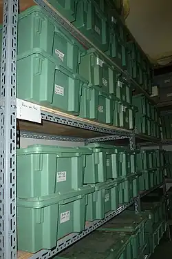 The botanical collections represent numerically the greatest heritage in the Muséum d'Angers, with more than half of the total number of museum objects. The herbaria contain more than 350,000 samples, mainly dating from the nineteenth century.[13] They are organised around three important collections:[14][15] the general herbarium, that of Alexandre Boreau, and that of James Lloyd, the three herbaria together making up about 80% of the total samples.