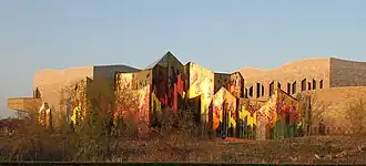 The Museum at Prairiefire is a museum in Overland Park, Kansas. The museum is a 42,000 square foot facility that opened in May 2014 and has received honors for its architecture style.[1] The museum carries displays created by other museums, such as American Museum of Natural History.[2] Prairiefire secured a partnership with the American Museum of Natural History and displayed two main traveling exhibits annually[3] that lasted until 2018.[4] When this partnership expired, plans were made to convert the traveling exhibit space into a permanent exhibit named "Kansas Revealed", though this has been repeatedly delayed. In 2024, Prairiefire announced a partnership with the National College Baseball Hall of Fame to open a permanent space at the museum.[5]