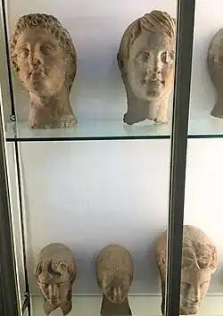 The civilization of peninsular Italy before the Roman conquest is witnessed in the Museum as well as by ceramics, by a precious Umbrian bronze statuette of a warrior (mid-5th century BC) and by the extraordinary series of votive terracottas, donated by Pope Pius XI in 1934 to the University of Pavia, in the form of heads and anatomical parts, dating back to the Hellenistic age, from Caere, today's Cerveteri. These finds, originally deposited in the Vatican Museums, reached Pavia thanks to the commitment of Carlo Albizzati.[19]