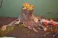 - A vivarium with 70 living animal species from the rainforests and native regions in 12 elaborately designed landscape basins on an area of 100 m2[3] completes the other permanent exhibitions. Visitors are offered regular show feedings. Rarities such as the black freshwater stingray from Brazil, Madagascan tomato frogs or the Senegal flounderfish, a "living fossil", can be seen. But also native species like grass snake or the eurasian harvest mouse are represented.