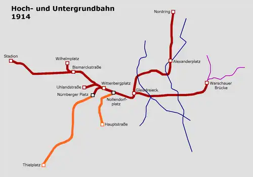 - ^ a b c d e Die Wilmersdorf-Dahlemer Schnellbahn Teil 1: Die Wilmersdorfer U-Bahn Archived 2011-07-28 at the Wayback Machine, Berliner-Untergrundbahn.de (in German)