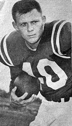 Earle Edwards was hired as the team's head coach before the 1954 season.[45] Edwards had previously been an assistant at Michigan State under Biggie Munn and at Penn State under Bob Higgins.[46] Edwards' teams compiled a record of 77–88–8.[47] Edwards is the longest tenured coach in NC State Wolfpack football history and holds the program records for games coached, wins, and losses.[47] His teams won five Atlantic Coast Conference titles and made two Liberty Bowl appearances.[47] Four times he was named the ACC Coach of the Year.[47] Edwards produced eight All-Americans: Dick Christy, halfback (1957),[48] Roman Gabriel, quarterback (1960, 1961),[49] Don Montgomery, defensive end (1963),[50] Dennis Byrd, defensive tackle (1966, 1967),[51] Fred Combs, defensive back (1967),[52] Gerald Warren, kicker (1967),[53] Ron Carpenter, defensive tackle (1968),[53] and Cary Metts, center, (1968).[54] Though Edwards' tenure wasn't overly successful from a record standpoint, it was the most successful tenure of any head coach to that point and laid the foundation for future successes to occur.[55] Edwards retired after seventeen seasons as the Wolfpack's head football coach.[56] After Edwards' retirement, State promoted Al Michaels from assistant coach to head coach.[57] Things didn't pan out for Michaels, as the Wolfpack compiled a 3–8 record in his only year as head coach.[58] Michaels was fired after just one season.[59]