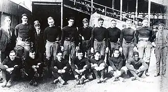 On August 20, 1920, a meeting was held by representatives of the Akron Pros, Canton Bulldogs, Cleveland Indians, and Dayton Triangles at the Jordan and Hupmobile auto showroom in Canton, Ohio.[14] This meeting resulted in the formation of the American Professional Football Conference (APFC), a group who, according to the Canton Evening Repository, intended to "raise the standard of professional football in every way possible, to eliminate bidding for players between rival clubs and to secure cooperation in the formation of schedules".[15]