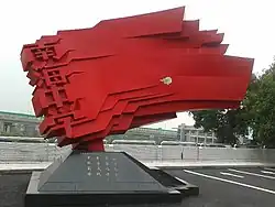 The school badge of Nanhai Senior High School is a floating golden flag constituted of the letters “N” and “H”, surrounded by a blue circle. [2]