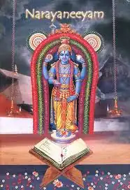 The Narayaniyam (Sanskrit: नारायणीयम्, romanized: Nārāyaṇīyam) is a medieval-era Sanskrit text, comprising a summary study in poetic form of the Bhagavata Purana. It was composed by Melpathur Narayana Bhattathiri, a celebrated Sanskrit poet of Kerala.[1] Even though the Narayaniyam is believed to be composed as early as 1585 CE,[2] the earliest available manuscripts came only after more than 250 years. The Bhagavata Purana is a major Hindu scripture consisting of about 18,000 verses, mainly devoted to the worship of Krishna. The work contains detailed descriptions of Guruvayurappan, a regional form of Krishna, and the temple town of Guruvayur.[3]
