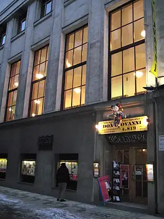 The National Marionette Theatre (Czech: Národní divadlo marionet, NDM) is a theatre company devoted to puppetry performances, located in the Old Town neighborhood of Prague, Czech Republic. The company has been active since June 1991,[1] but uses a historical puppetry space called Říše loutek (Kingdom of the Puppets) that dates to at least 1929, when it hosted the founding of the Union Internationale de la Marionnette[2]