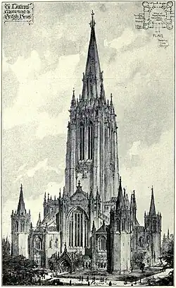 Building News commented, in their round-up of "Architecture at the Royal Academy": "an ambitious scheme ... a well-handled group of spires and Gothic features little likely ever to be built, but none the less able, and in some ways ideal."[1]