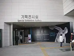 The museum is situated on what used to be a golf course that was part of the Yongsan Garrison, the central command of the United States Forces stationed in Korea. The US Army returned a part of the land in 1992 to the Korean government, which went on to become the Yongsan Family Park. While the plans for the museum inside the park began in 1993, its opening was delayed repeatedly by a helipad, which was eventually relocated in 2005 by agreement. The museum contains over 310,000 pieces[1] in its collection with about 15,000 pieces on display at one time. It displays relics and artifacts throughout six permanent exhibition galleries such as Prehistory and Ancient History Gallery, Medieval and Early Modern History Gallery, Donation Gallery, Calligraphy and Painting Gallery, Asian Art Gallery, and Sculpture and Crafts Gallery. It is the sixth largest museum in the world in terms of floor space, now covering a total of 295,551 m2 (3,180,000 sq ft).[6]