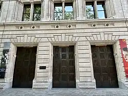 The refurbishment cost £41 million, was designed by the architect Jamie Fobert and Purcell and the main contractor was Gilbert-Ash.[24][25] It added new galleries, learning spaces, restaurants and a public forecourt. The gallery's main entrance was moved and features three new 4 m (13 ft) bronze doors which carry 45 portraits of un-named women, drawn by Tracey Emin.[26][27]