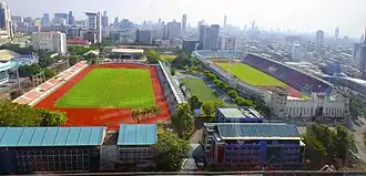 The stadium construction started in 1937 in the original area of Thai Windsor Palace that demolished in 1935.[1][2][3] The Department of Physical Education entered into a 29-year lease agreement with Chulalongkorn University. First use of the stadium happened when King Ananda Mahidol presided over in the opening ceremony of 1938 men's athletics competition, which changed the venue from Sanam Luang.[4][5]