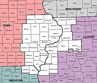 Shortly thereafter, on March 1, 1995, the Quad Cities office's county warning area expanded from 12 to 34 counties – 21 in Iowa and 13 in Illinois. A full team of forecasting staff was achieved in October 1998, with the arrival of five new Senior Forecasters. On November 17, 1999, the weather forecast office in St. Louis, Missouri, transferred responsibility for Clark and Scotland counties in extreme northeast Missouri to the Quad Cities weather office, bringing the total number of counties in the Quad Cities office's county warning area to its present number of 36.[2]