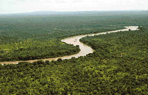 Rainforests often have a great deal of biodiversity with many plant and animal species. This is the Gambia River in Senegal's Niokolo-Koba National Park.