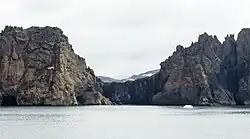 Neptune's Window (62°59′S 60°33′W / 62.983°S 60.550°W) is a narrow gap between two rock pillars, situated close east of Whalers Bay on the southeast side of Deception Island, in the South Shetland Islands. So named by Lieutenant Commander D.N. Penfold, Royal Navy, following his survey of Deception Island in 1948–49, because weather and ice conditions in the approach to Neptunes Bellows could conveniently be observed from this gap.