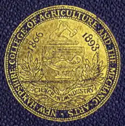 In December 1910, the student newspaper, The New Hampshire College Monthly, advocated a name change for the college, as the original name suggested "a rather limited scheme of education".[2] A bill in the New Hampshire legislature to change the name was defeated in February 1911—one newspaper reported "the idea wasn't popular in the rural districts."[3] Twelve years later, in 1923, Governor Fred H. Brown signed a bill changing the name of the college to University of New Hampshire. The university was incorporated on July 1, 1923.[4]